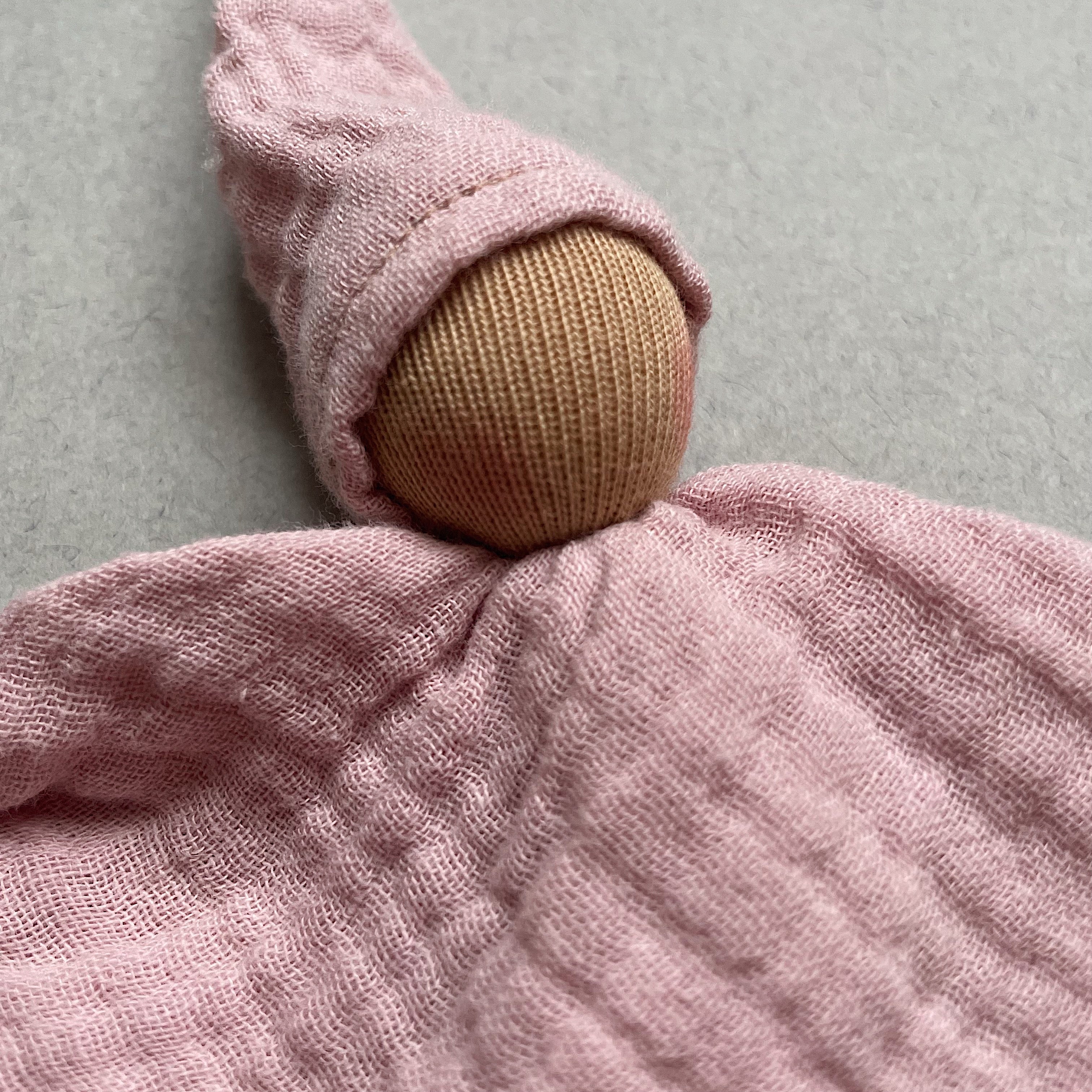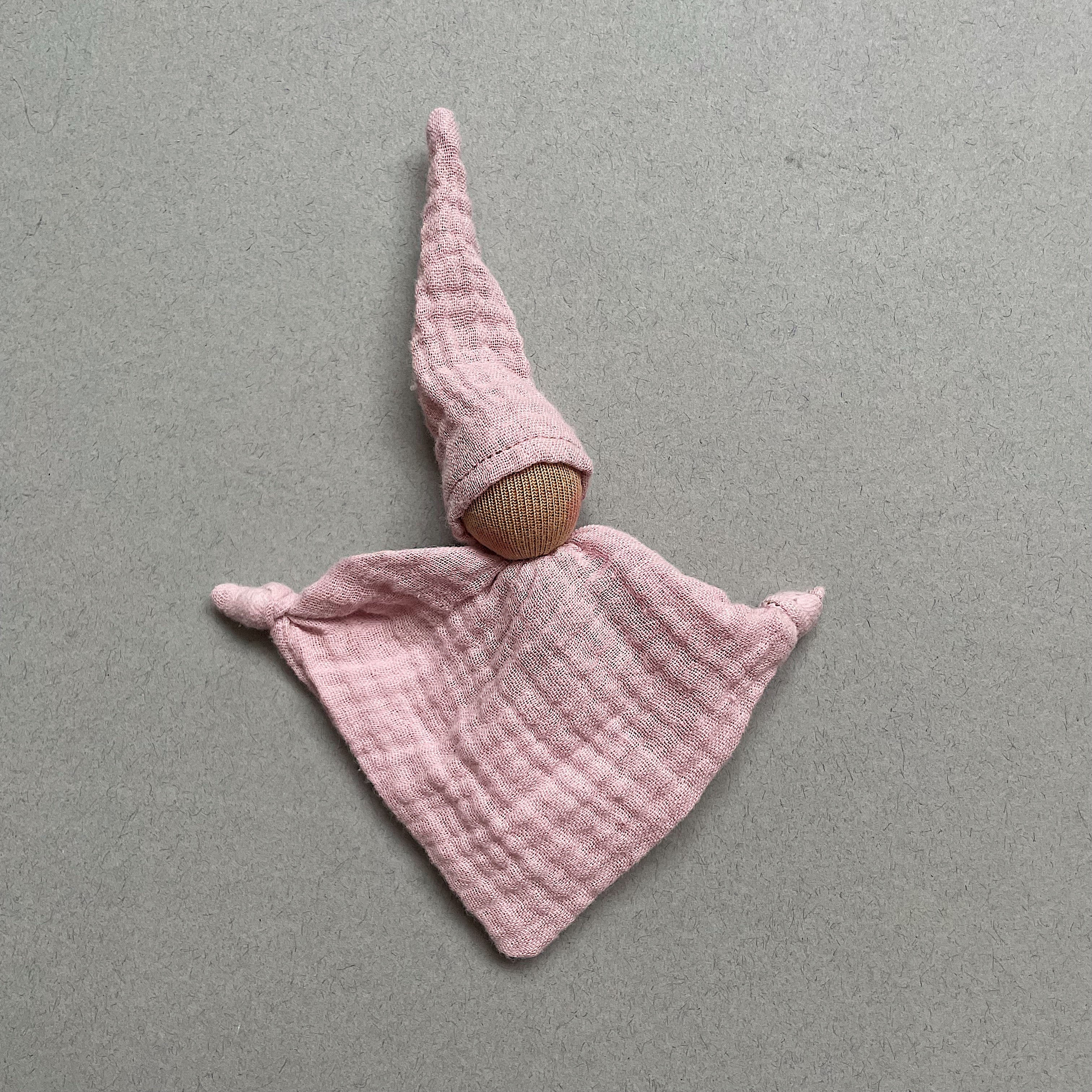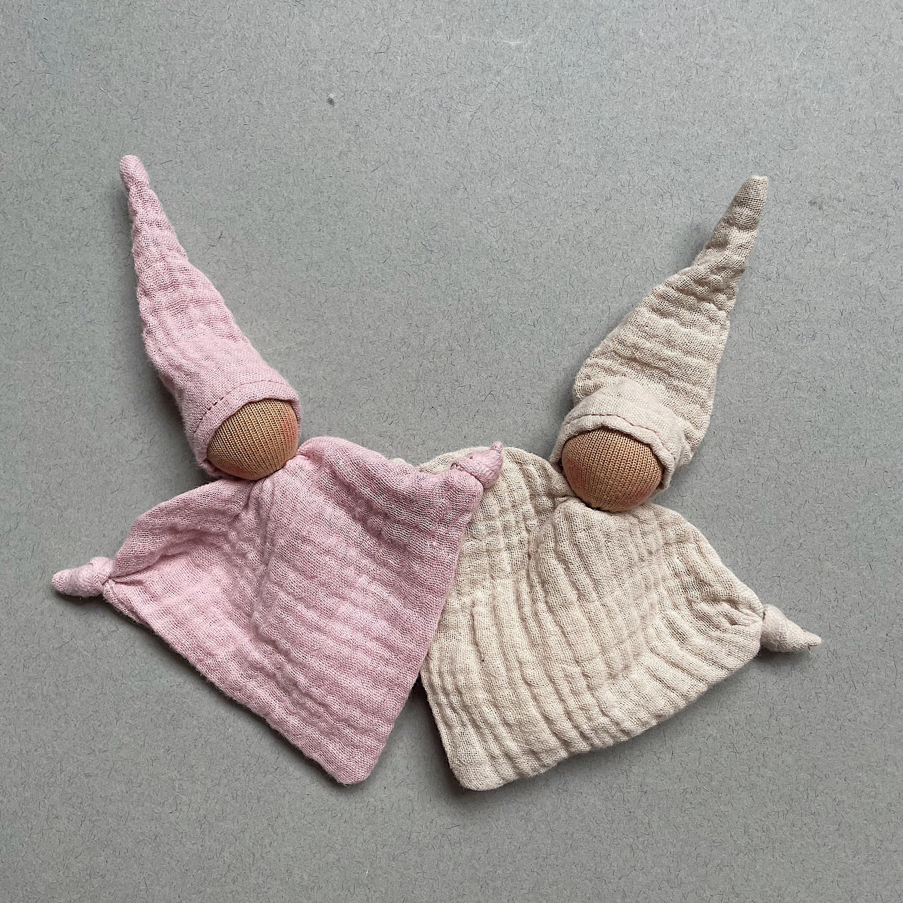 This baby gnome is made with the softest organic cotton gauze, cotton jersey and stuffed with pure clean sheep wool. This little one fits happily into hands and pockets. He would also look lovely as an ornament for the home.