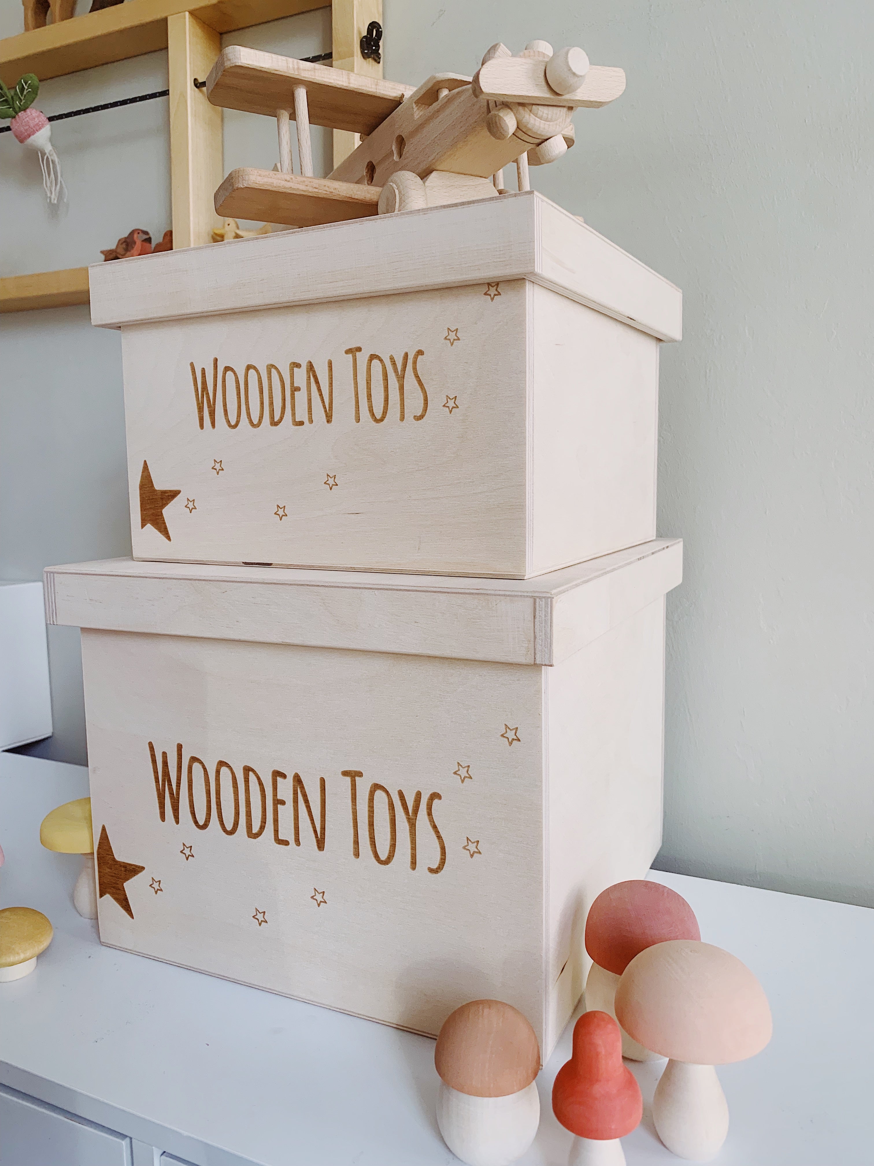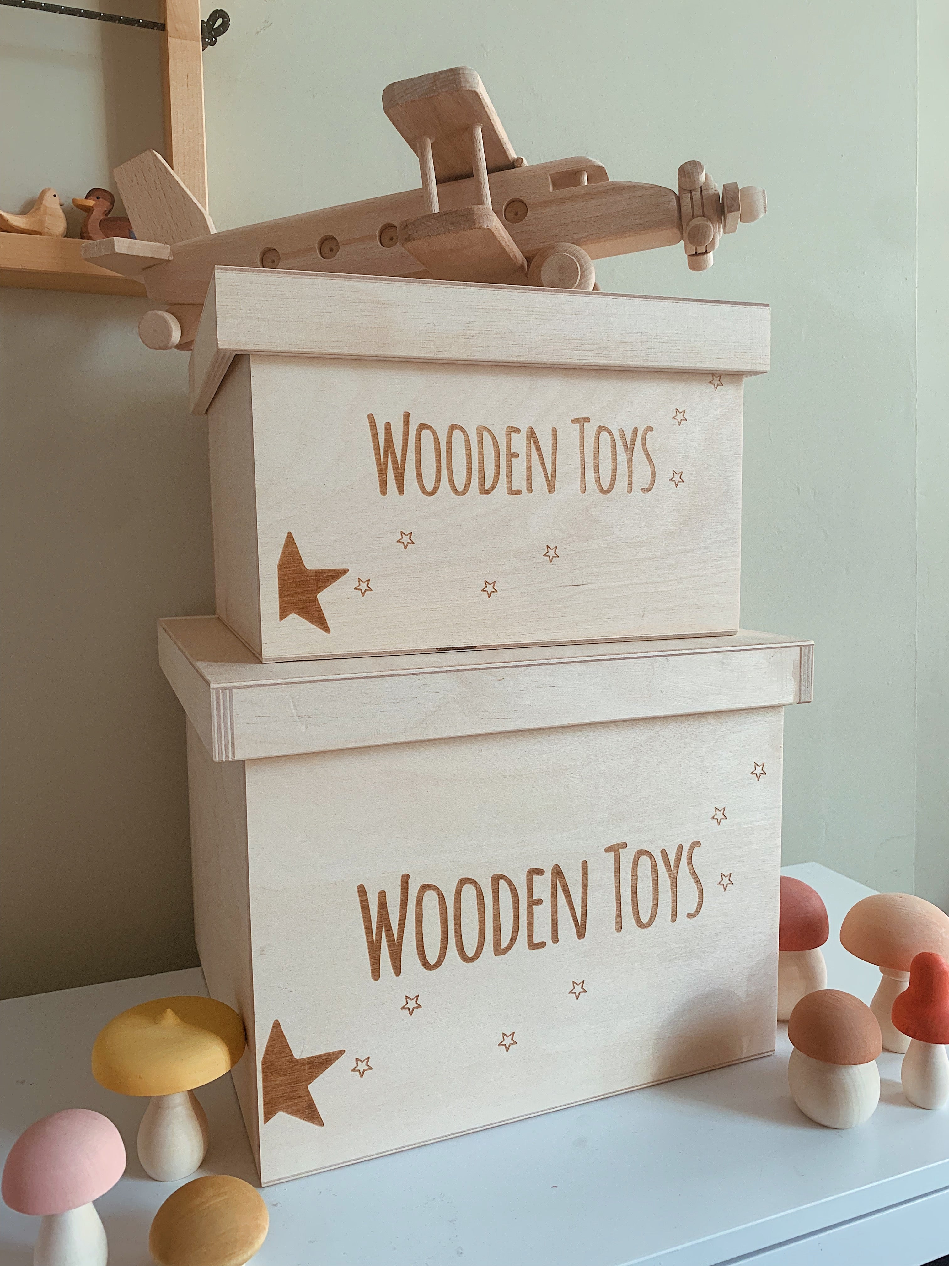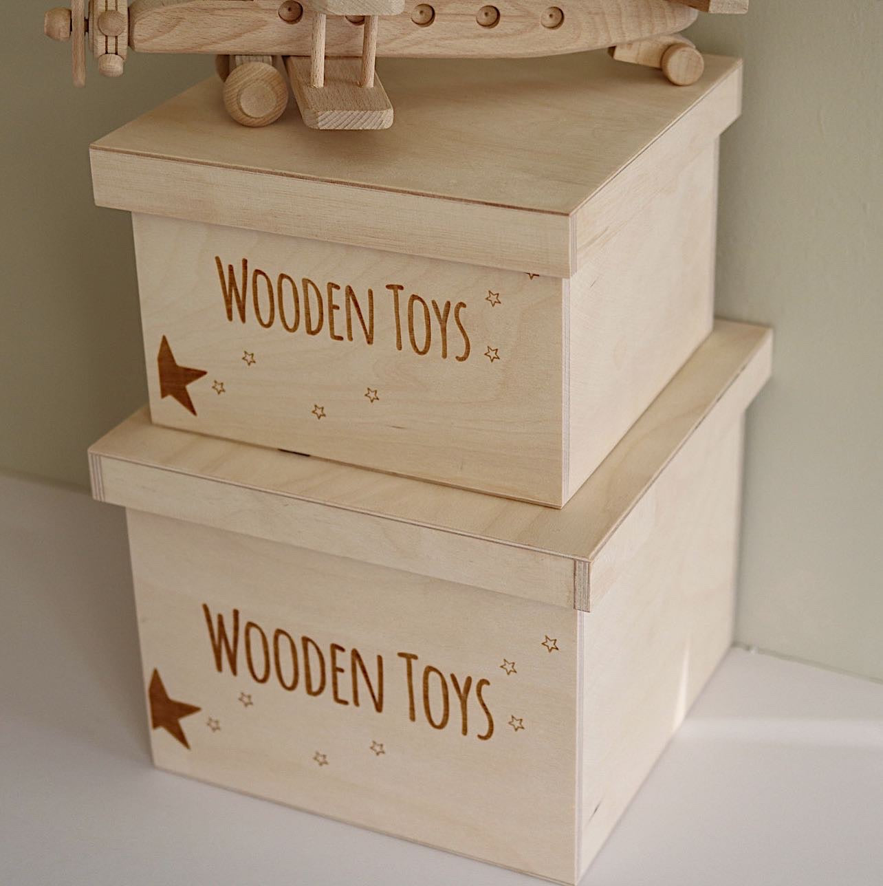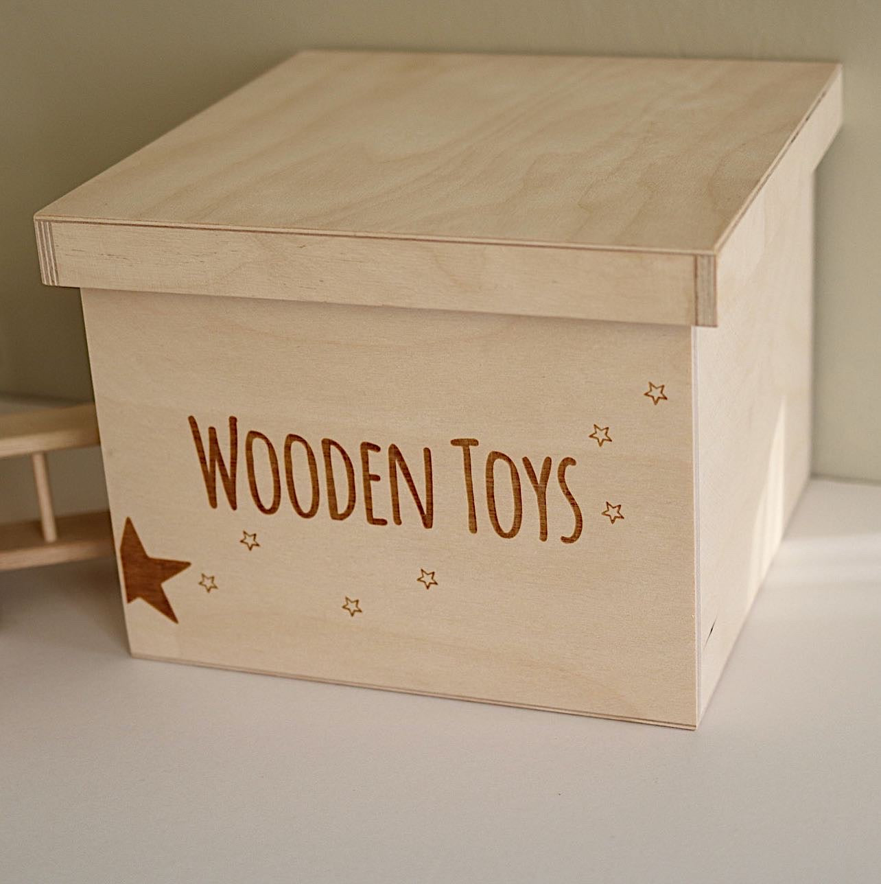 Our new 'WOODEN TOYS ' Storage Box will make a lovely addition to your child's nursery or playroom. Perfect for hiding away and protecting your little one's toy treasures and more!