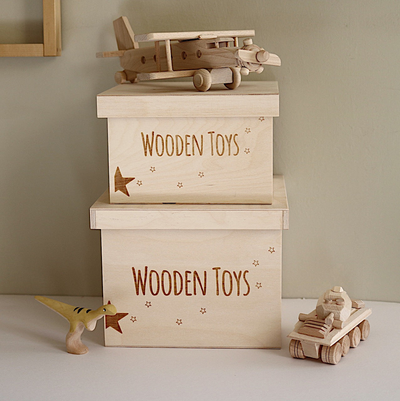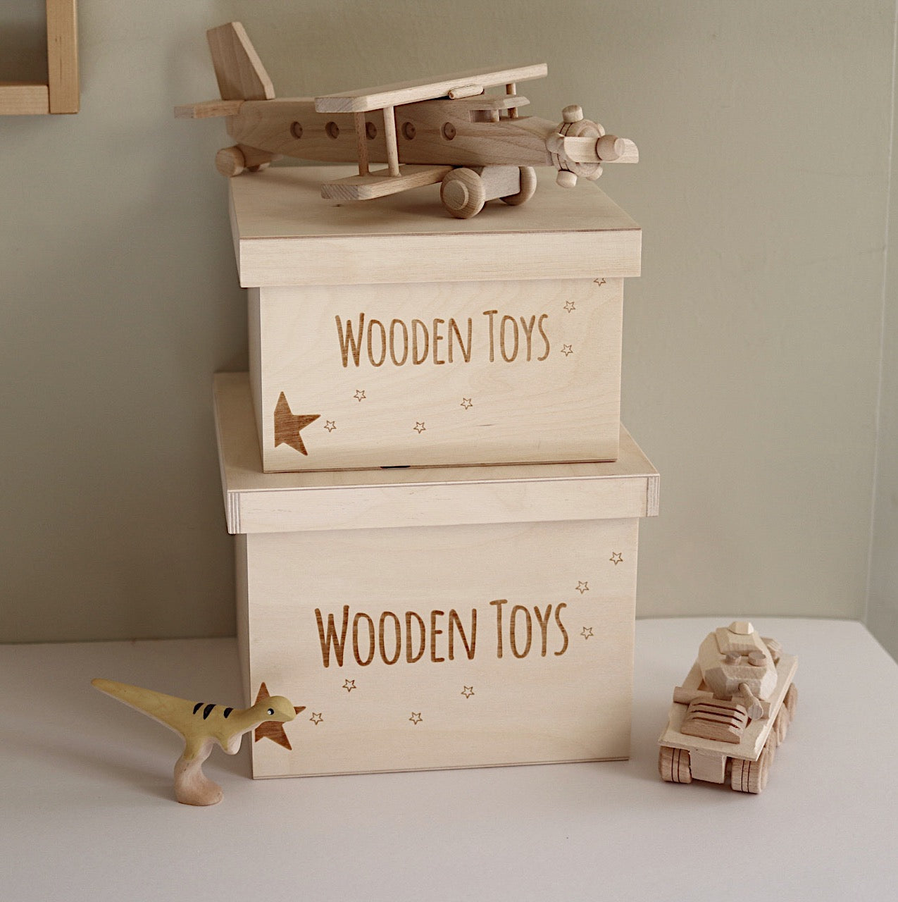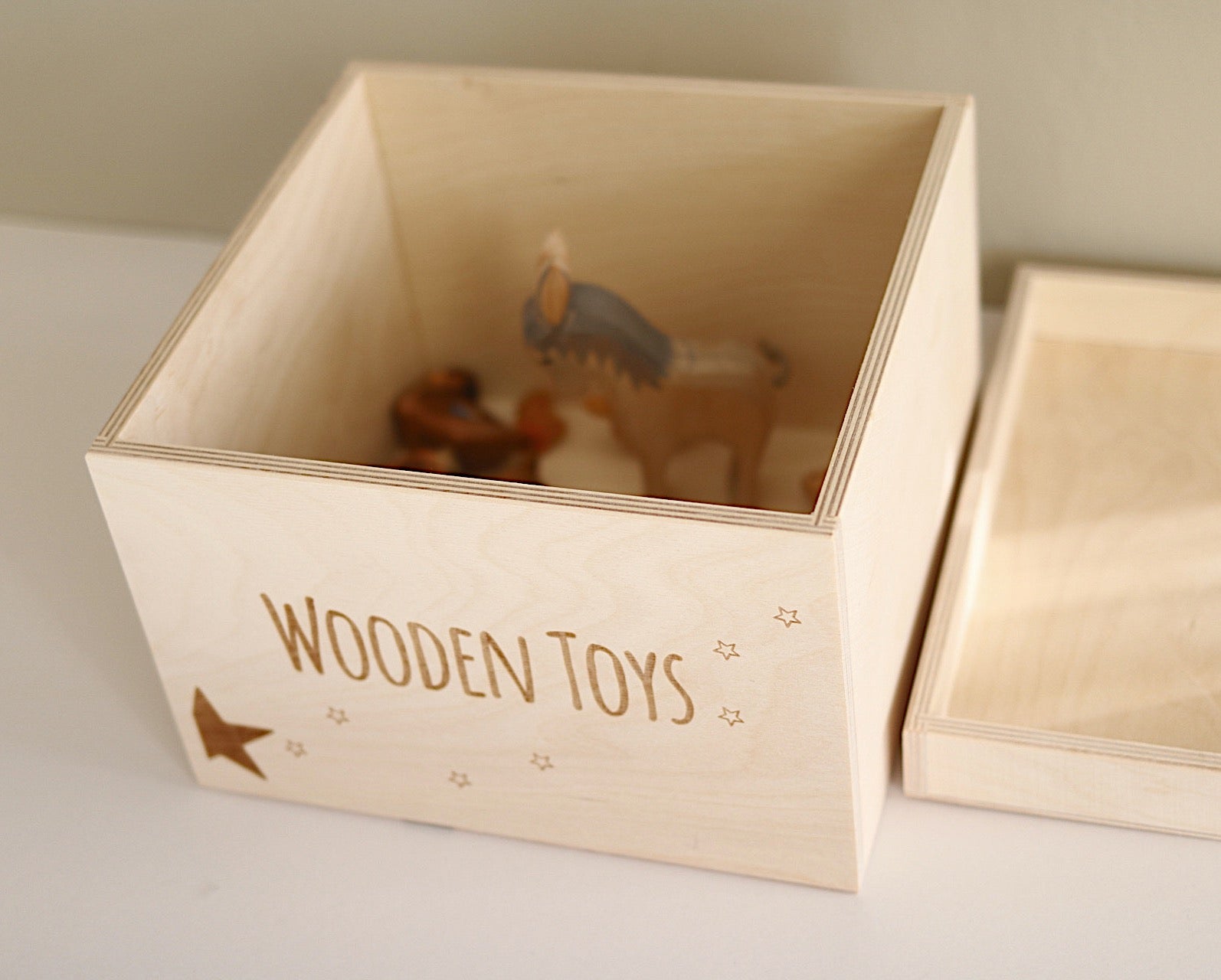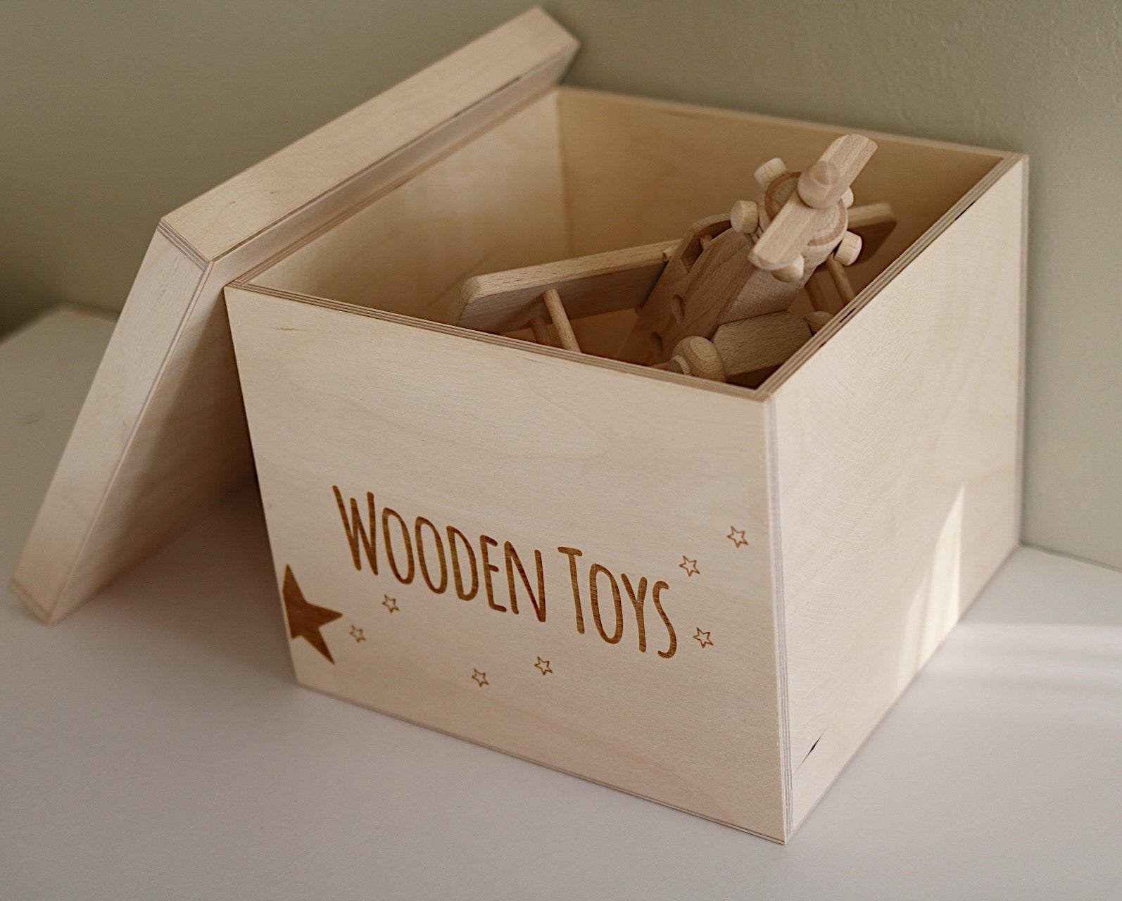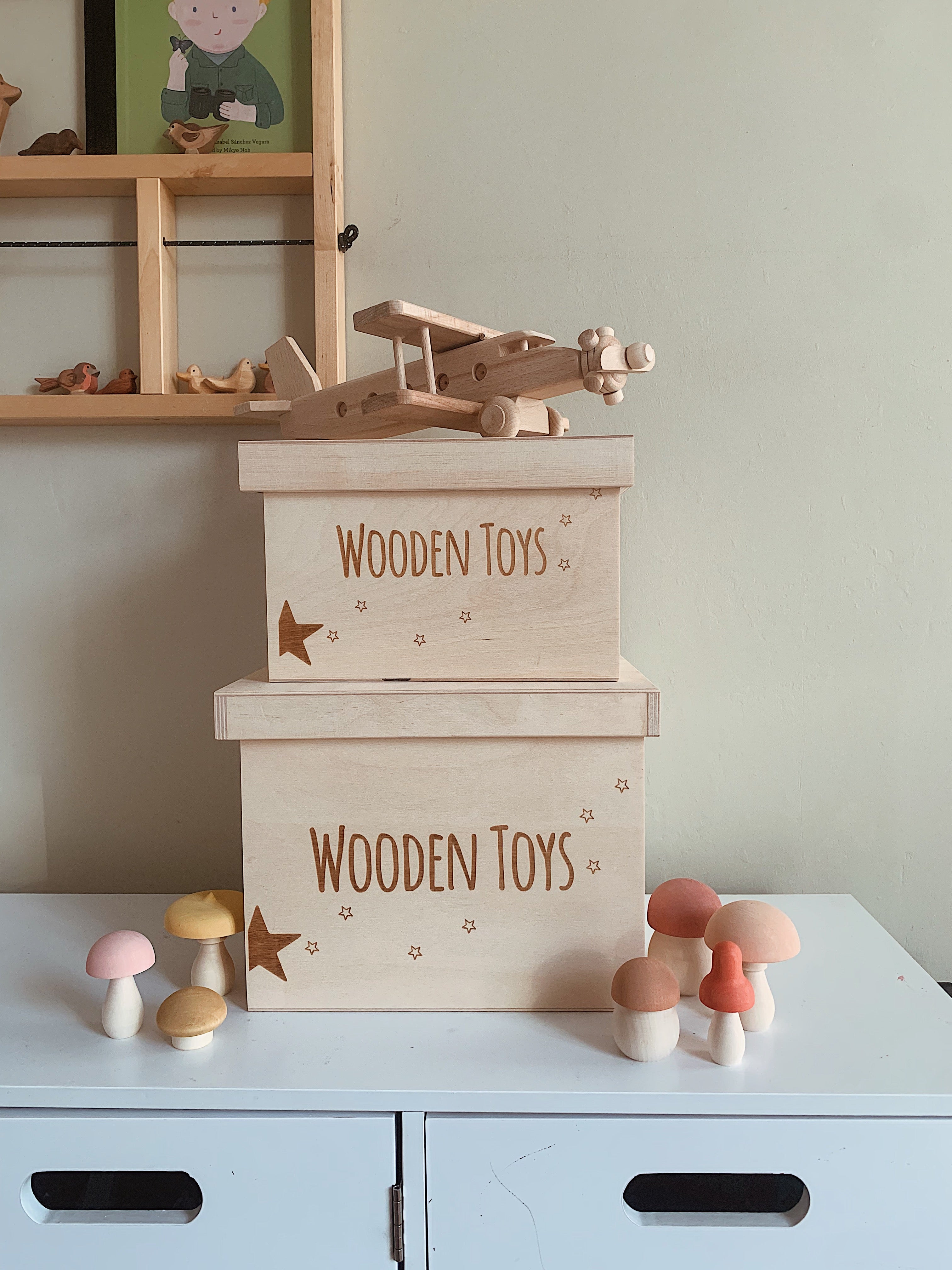 Our new 'WOODEN TOYS ' Storage Box will make a lovely addition to your child's nursery or playroom. Perfect for hiding away and protecting your little one's toy treasures and more!