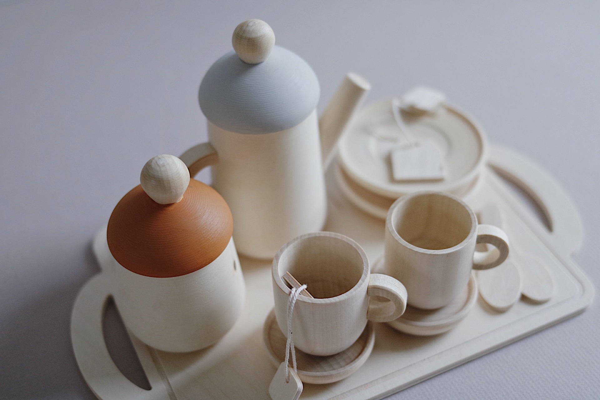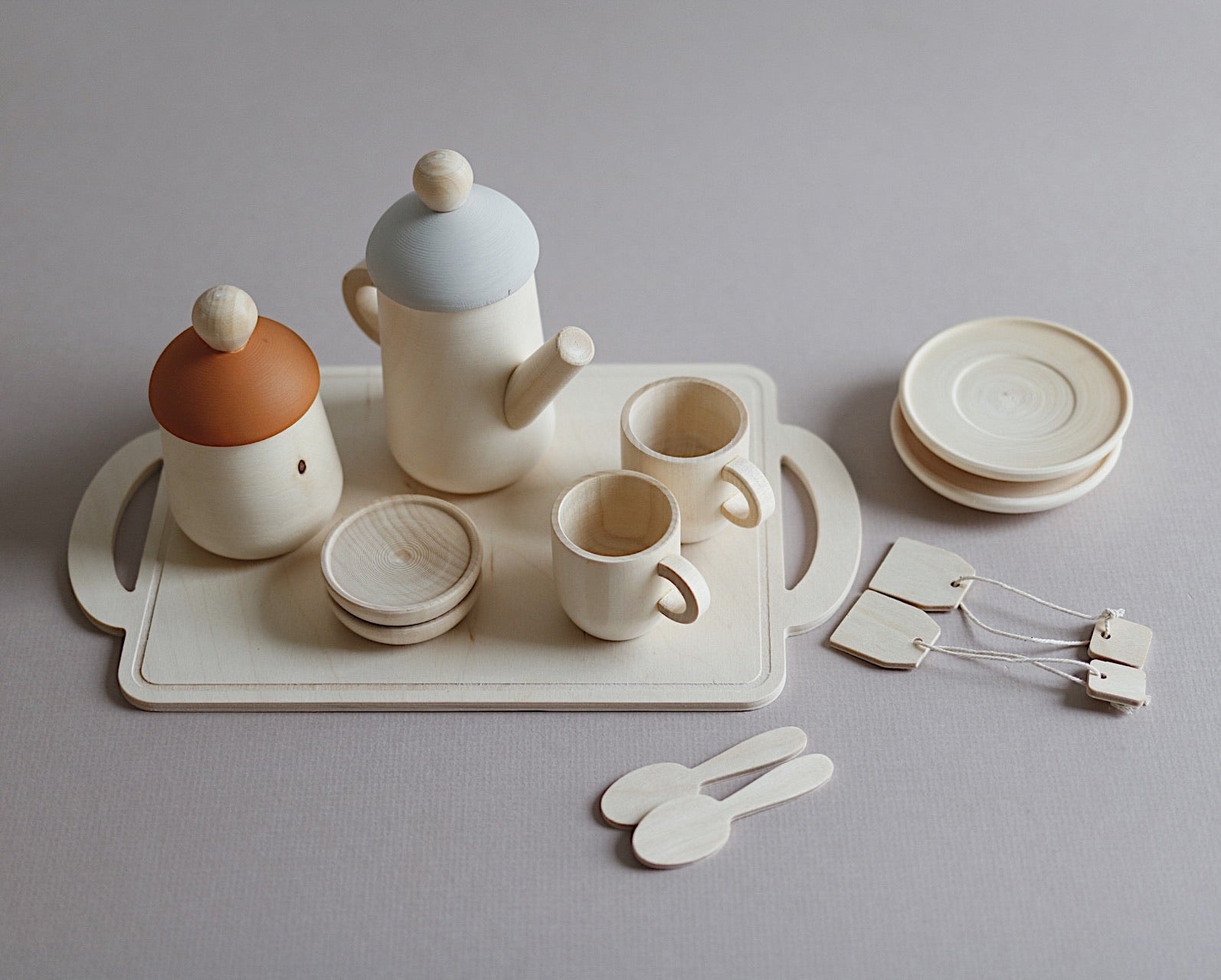 Handcrafted Wooden Tea Set - Custom Colour choice