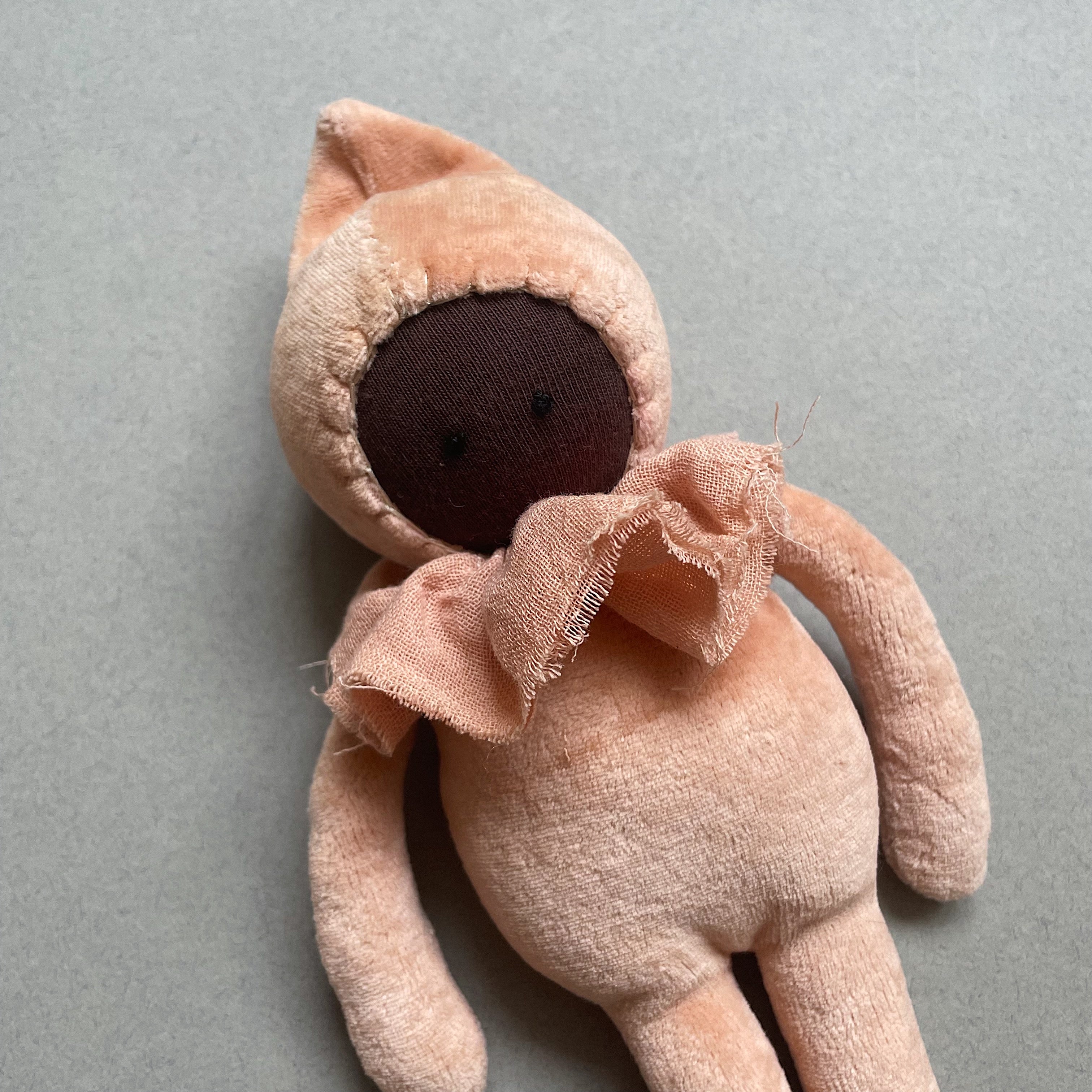 A beautiful Waldorf gnome designed and handmade by Sophia Smeekens of Dutch brand Studio Escargot. All of Sophia's dolls are made from recycled, vintage and plant dyed fabrics and filled with ethically sourced wool.