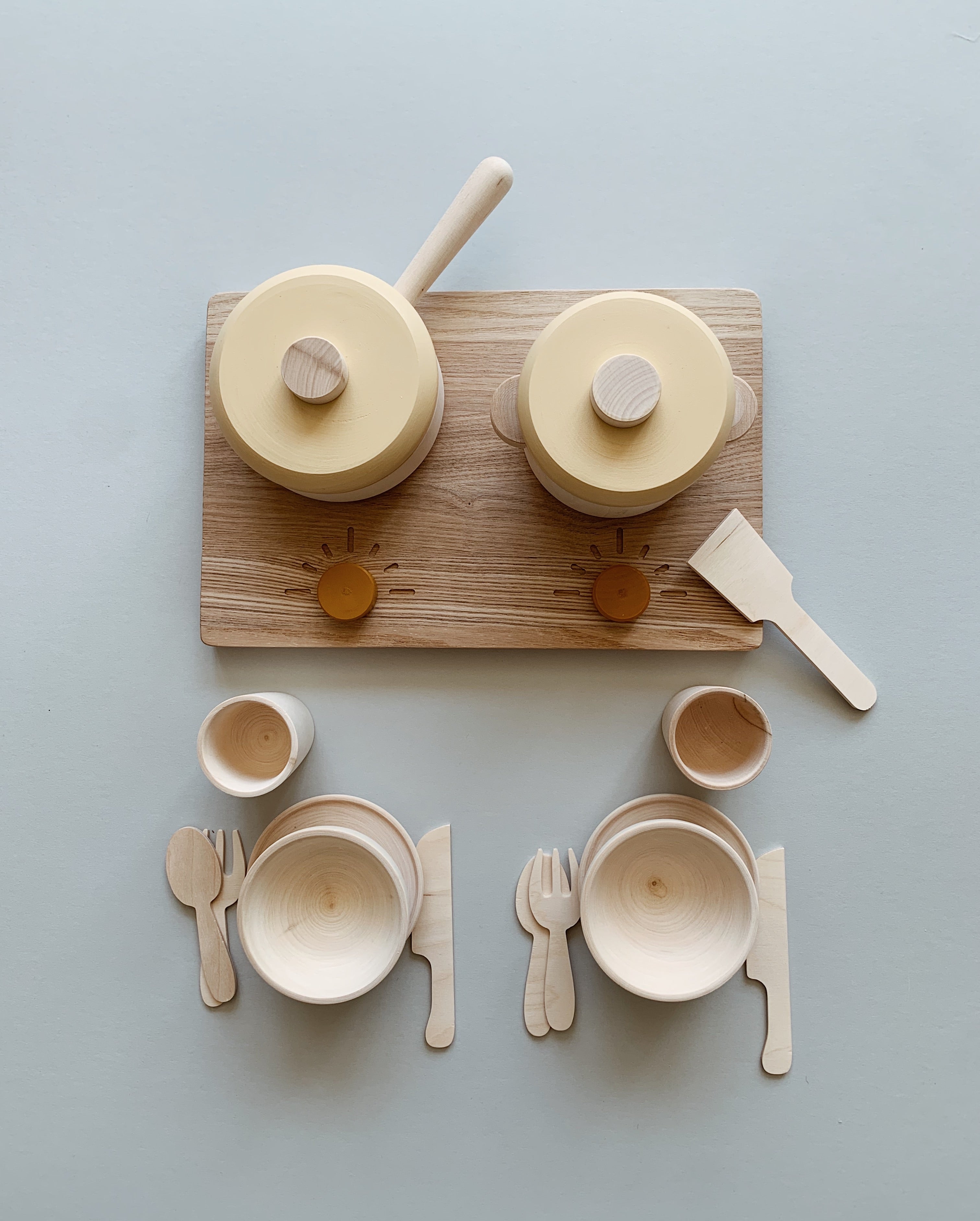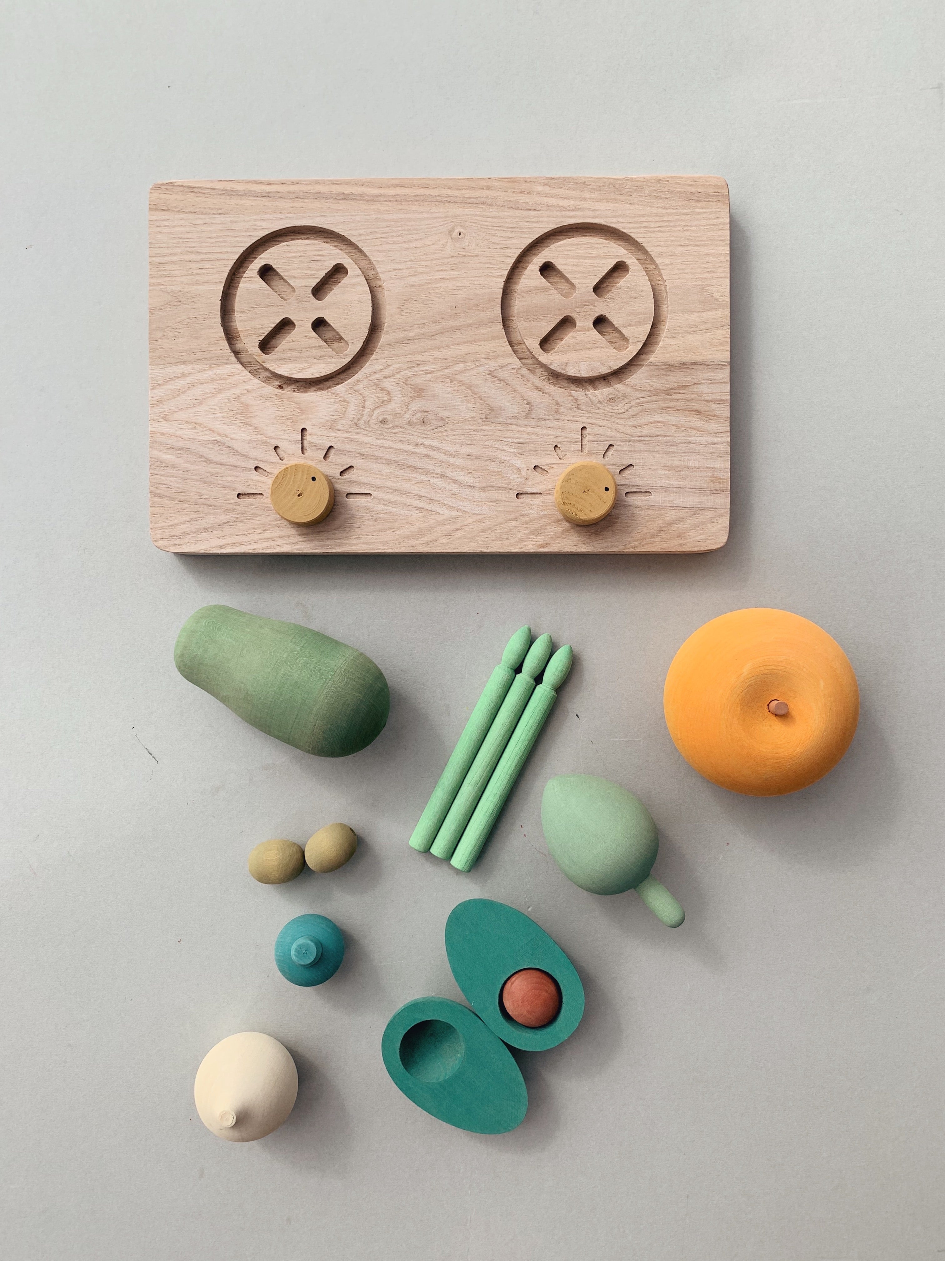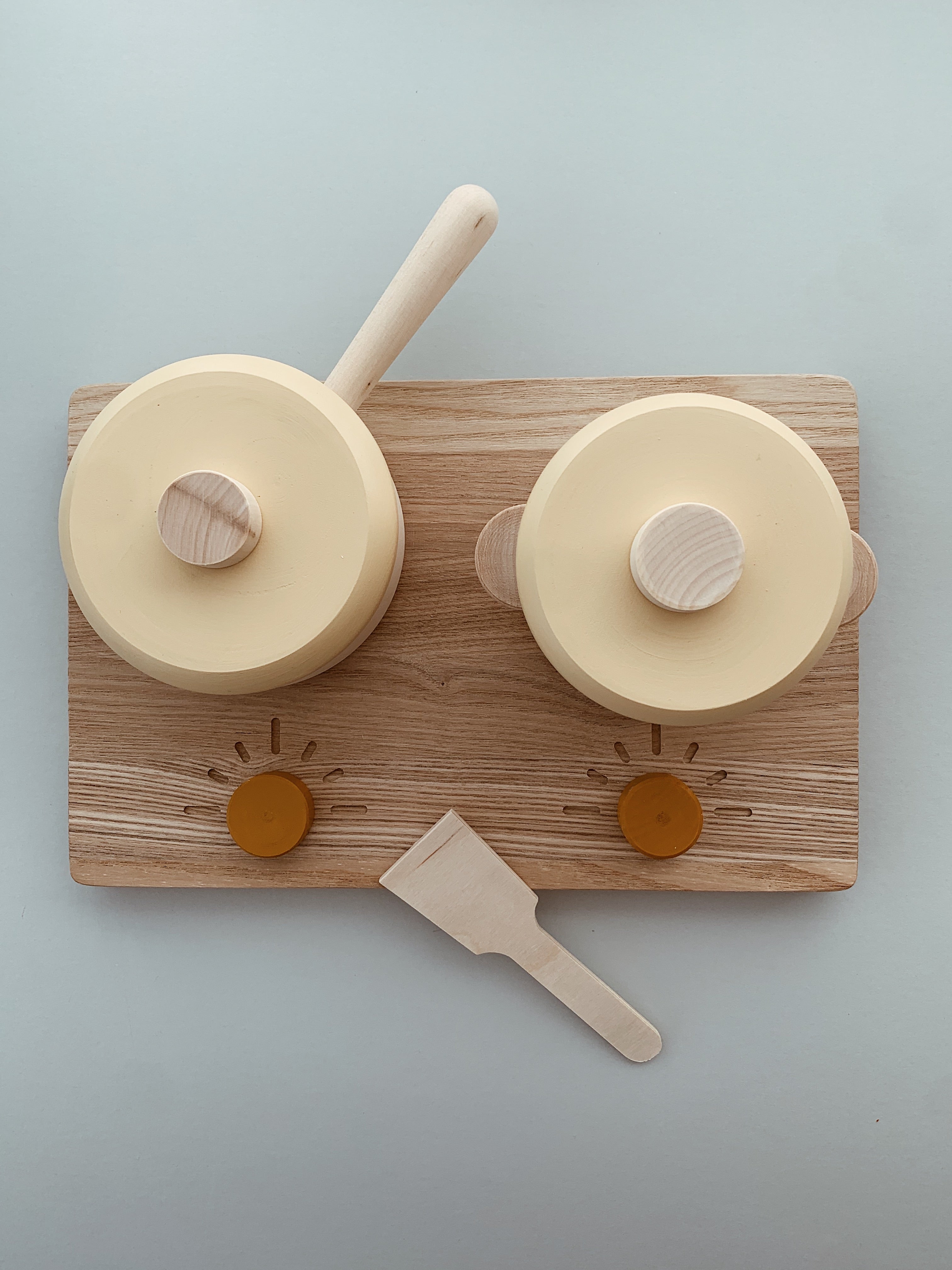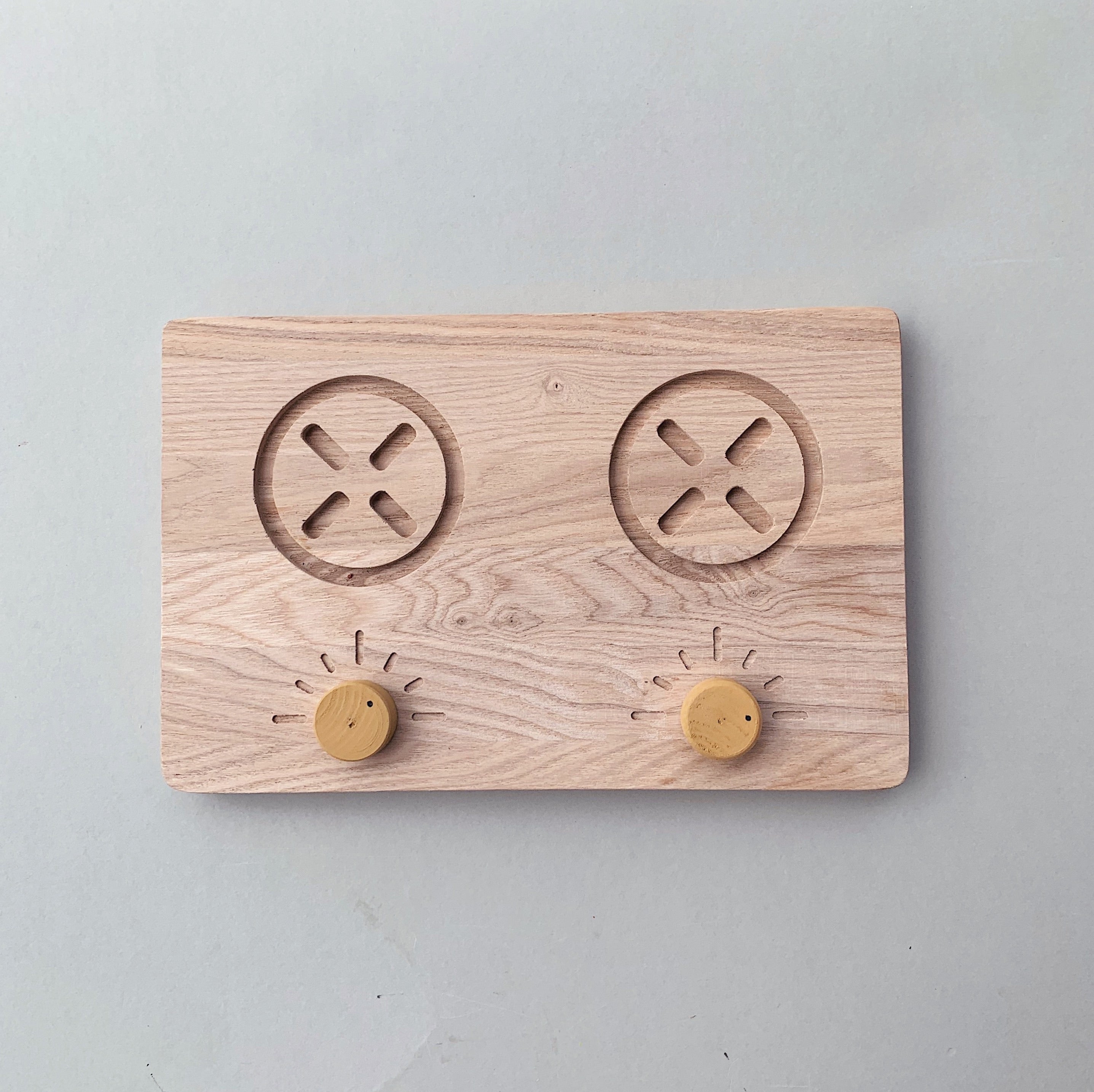 Handmade wooden cooktop toy will make a lovely addition to your child’s play kitchen. It’s made from sustainably sourced oak wood.