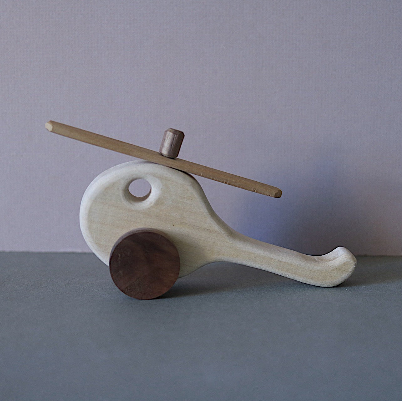 Bring imagination to life with this beautifully handcrafted wooden helicopter. Made from natural, sustainable maple wood and finished with smooth, child-safe oils, it’s perfect for little hands to explore.